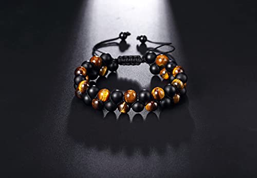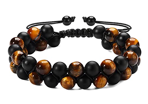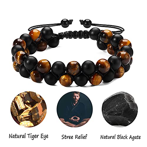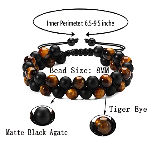 XIANNVXI - XIANNVXI Men Women Matte Black Agate Onyx Tiger Eye Stone Beads Bracelet 8mm Double Layer Natural Gemstone Beaded Anxiety Bracelets Adjustable Braid Bracelet