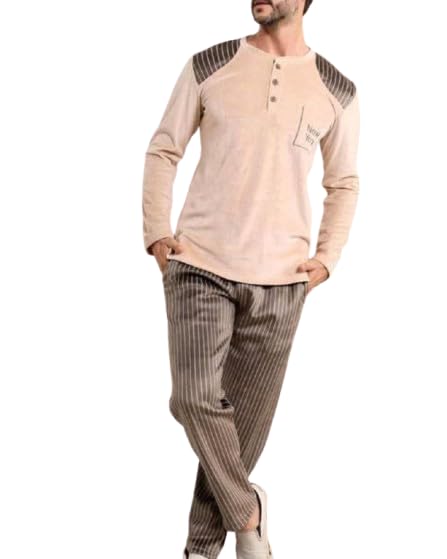Generic - بيجامة رجالي قطيفة شتوي - هيدي تركي وشن - مبطن من جوة - مقاس XL - تبس حتى 75 كيلو - موديل #: 348-01201