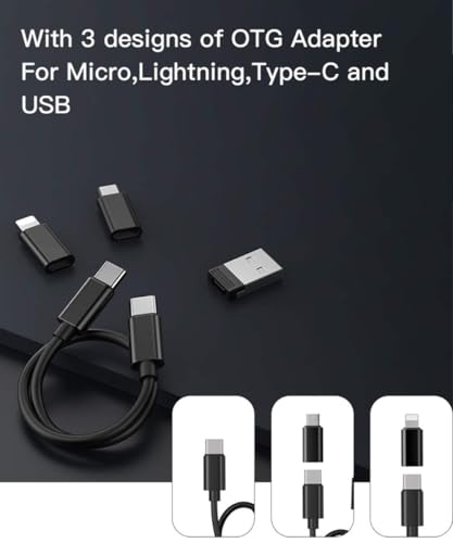 - 2. متوافق مع جميع الموبايلات الذكية/أجهزة الكمبيوتر - مجموعات توصيل 6 × 1؛ 1 كابل 20 سم من النوع سي إلى النوع سي مع محول USB A/لايتنينج/Micro USB او تي جي.