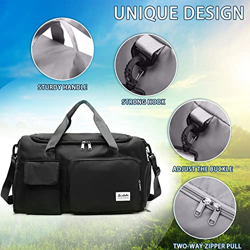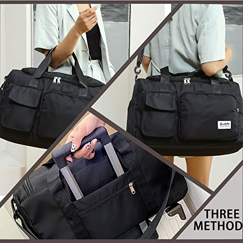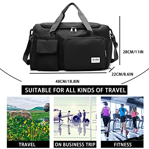 Yitexin - Gym Duffle Bag with Shoe Compartment Wet Pocket, Weekender Travel Bag with Shoulder Straps, Waterproof Sports Duffle Bag for Men Women, Lightweight Carry on Gym Bag, Black