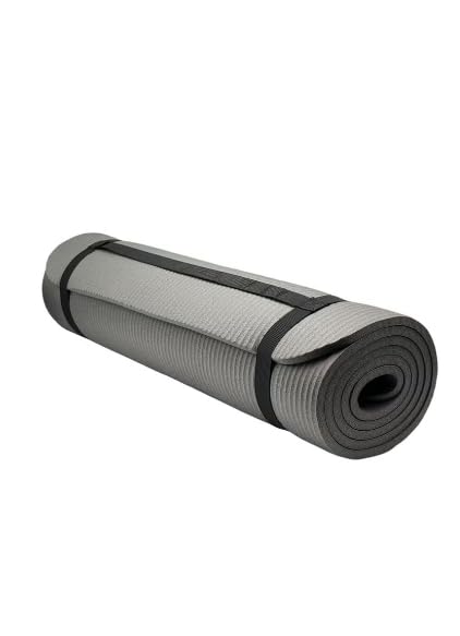 Generic - Yoga Mat 10mm Non Slip Yoga Mat with Attached Strap – High Quality for Latest Yoga, Pilates, and Various Home Workouts (Grey)