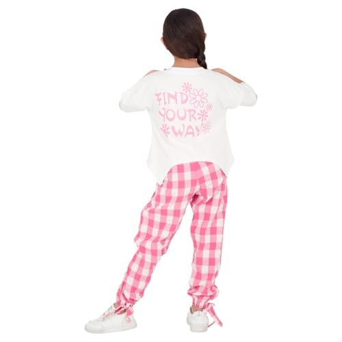 Choice N.C - طقم بناتي صيفي تيشرت سنجل ليكرا قطن وبنطلون كاروه كوريشه قطن طباعة your way تصميم عملي ومريح خفيف الصيف CODE 2042