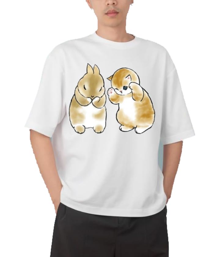 Generic - Youth black white oversize fit t-shirt kitty kitten kawaii cute cat 115