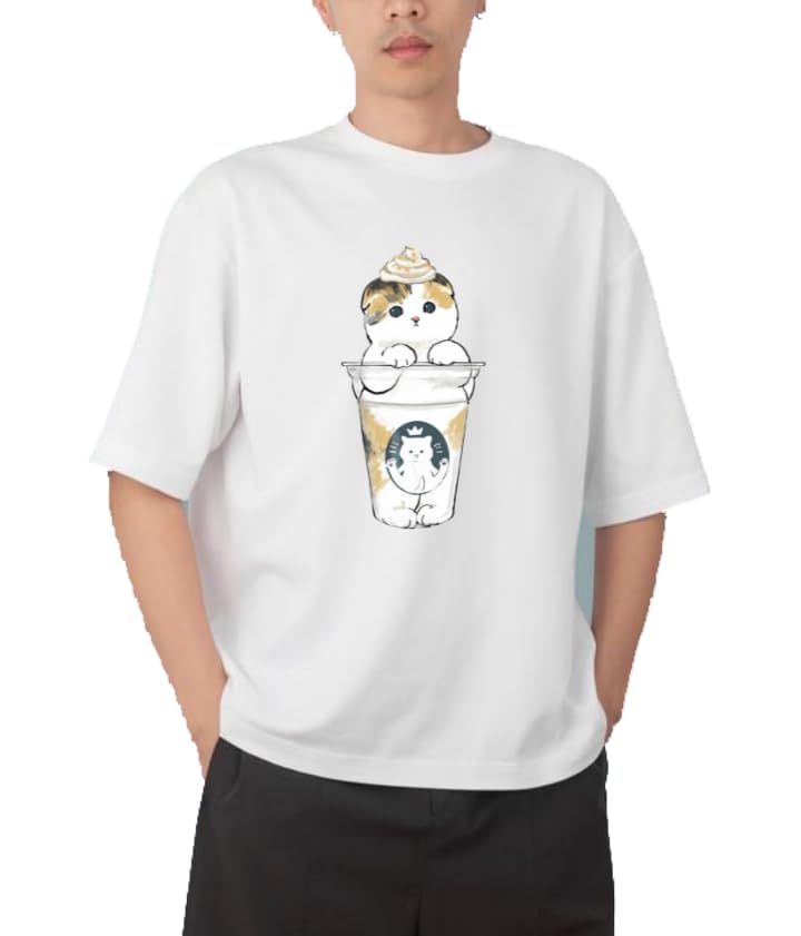 Generic - Youth black white oversize fit t-shirt kitty kitten kawaii cute cat19