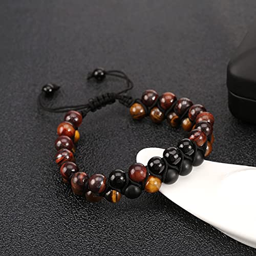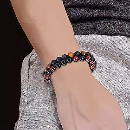 Generic - YUJIAN 3 PCS 8mm Tiger Eye Handmade Beaded Bracelets for Men, Healing Crystal Mens Bracelet Essential Oil Diffuser Adjustable Anxiety Bracelet Men's Gift,