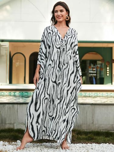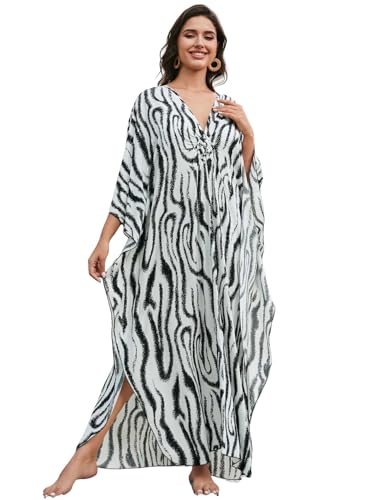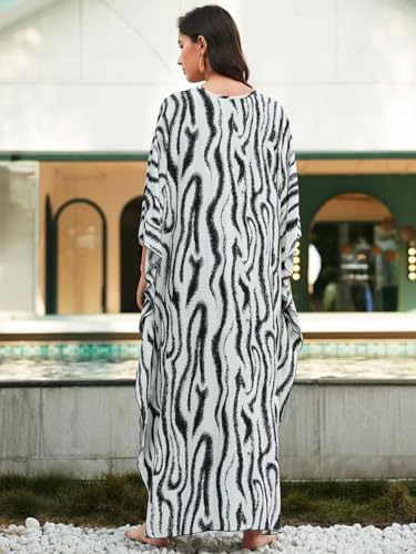 Generic - Zebra Print Kaftan Beach Dress, V-Neck Maxi Coverup, Long Flowing Style