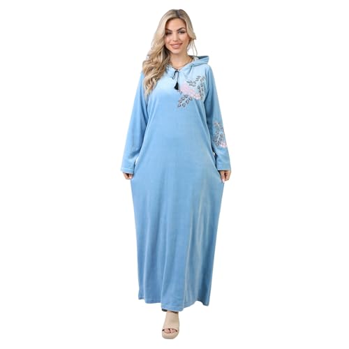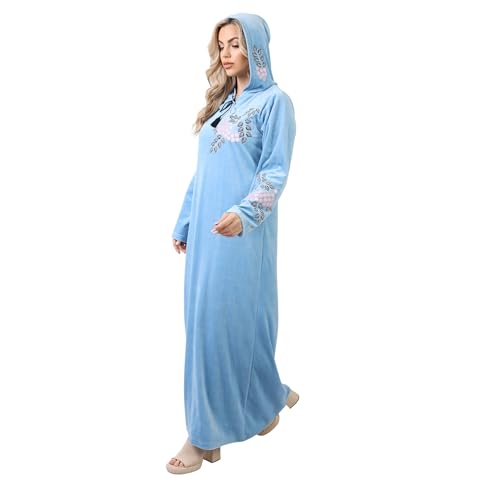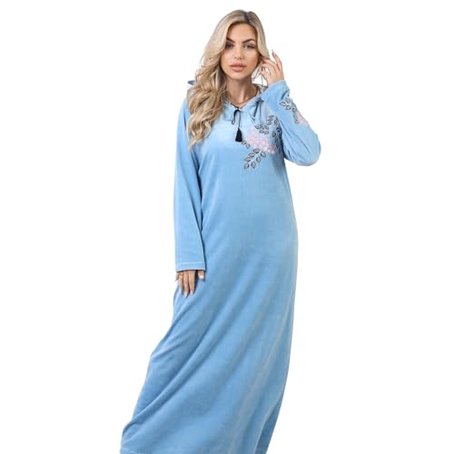 ZECOTEX - ZECOTEX Velvet Winter Nightgown for Women | Long Warm Sleepwear with Elegant Embroidery | Soft Home Dress | قميص نوم شتوي نسائي قطيفة مطرز أنيق