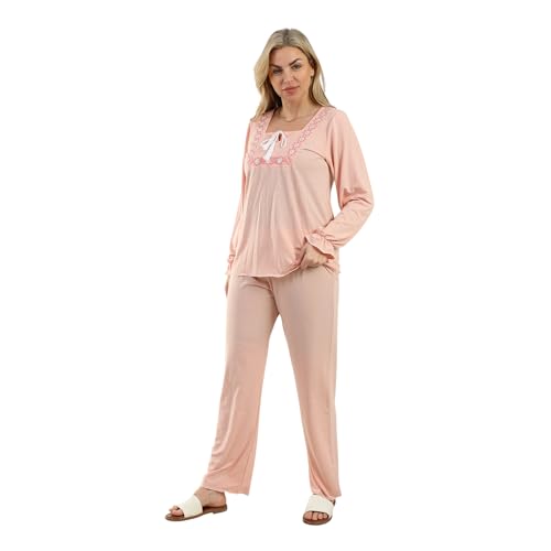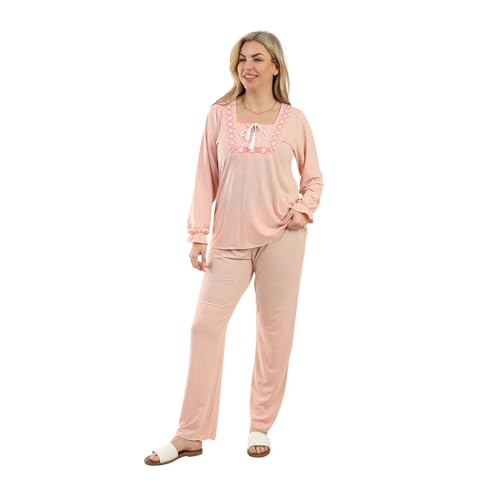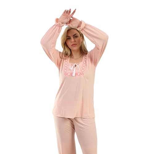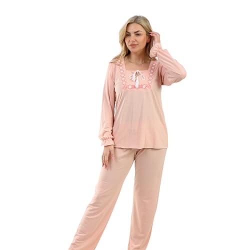 ZECOTEX - بيجامة بأكمام طويلة، ملابس نوم مريحة بخامة خفيفة الوزن لتوفير أقصى درجات الراحة، طقم ملابس استرخاء أنيقة للنساء من زيكوتكس