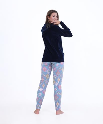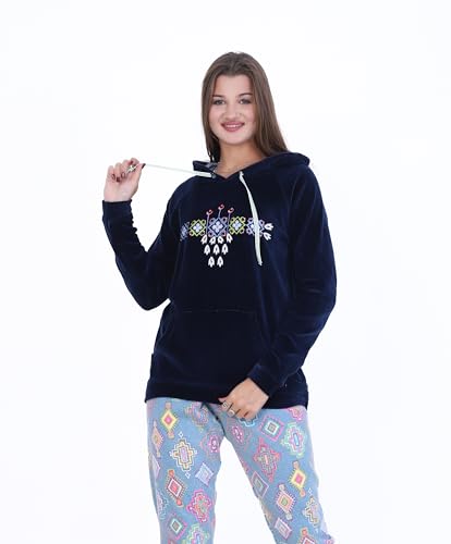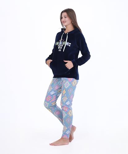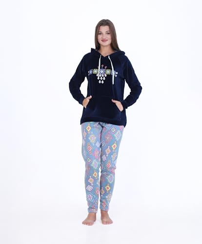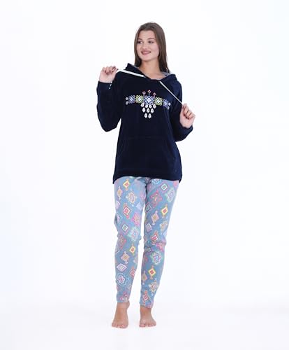 ZECOTEX - ZECOTEX Women's Winter Pajama Set | Embroidered Velvet Fabric in Polar Fleece with Hood Warm & Soft Homewear