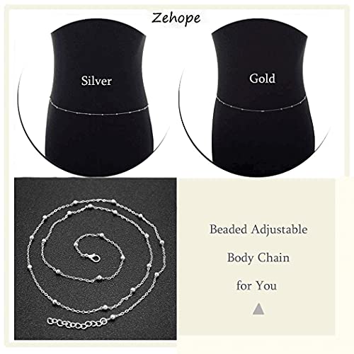 Zehope - Zehory Beaded Waist Chain Silver Belly Body Chain Beach Body Chain Boho Waist Jewelry for Women(Silver)