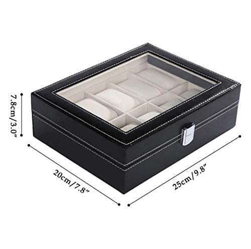 Zephorus - 10 Slots Stylish New Watch Box Case Organizer Pu Leather Wrist Watch Display Storage Holder Watch Pillows Gift For Loved Synthetic Leather Jewelry Glass Display Luxury Best Watch Box,Black