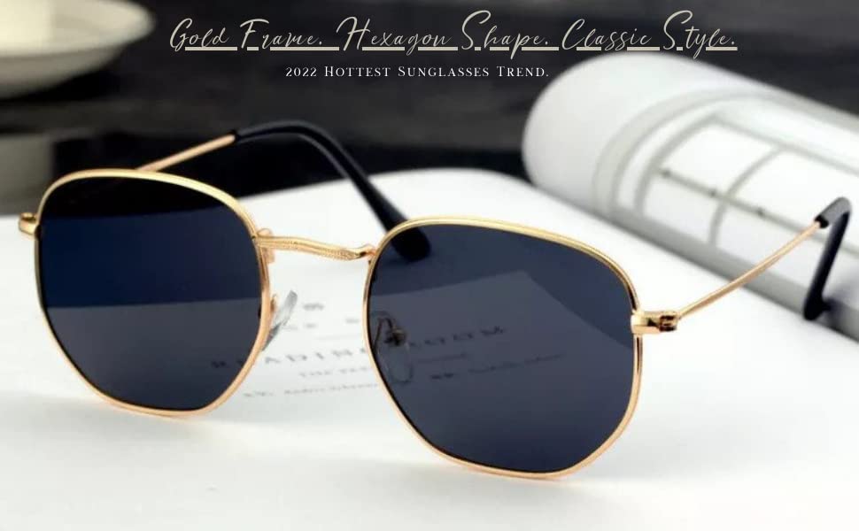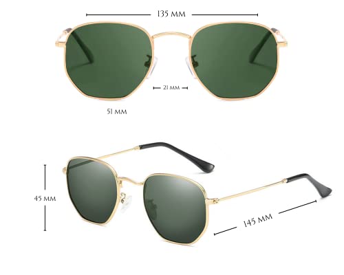 Ziza Play - نظارات شمس مستقطبة للرجال من زيزا بلاي للنساء إطار سداسي مقاس متوسط كبير مع حماية الأشعة فوق البنفسجية 400 نمط كلاسيكي ريترو ستايل ذهبي ومقاس