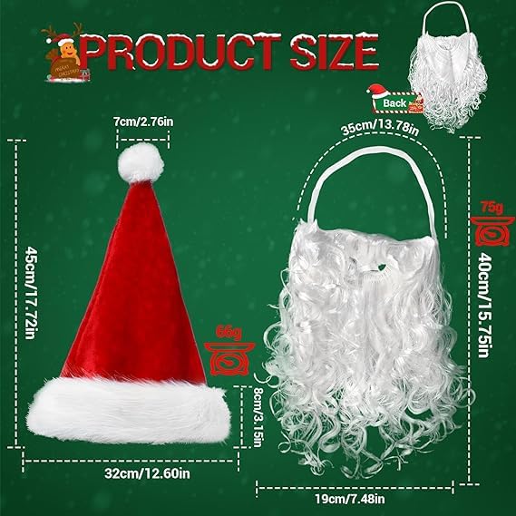 ZUGANIAN - Santa Hat and beard for adult Christmas costumes Decorated Santa Hat Santa Beard mask Mask for men and women