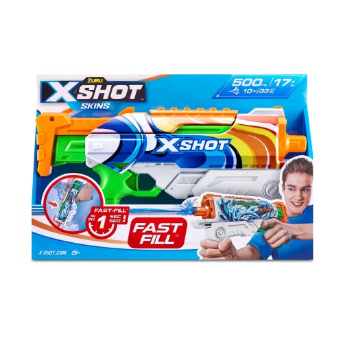 - WATER GUN: The X-Shot Water Fast-Fill Skins Hyperload with a unique look and plenty of storage capacity, allowing you to fill your water gun in just a second and resume the fight well before your opponents.