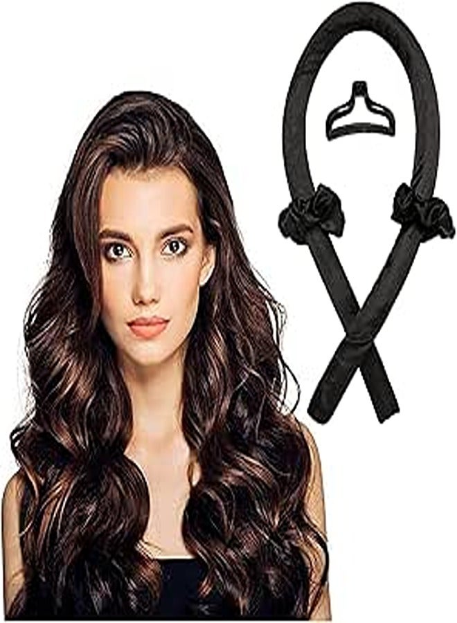 Premify Black Heatless Hair Curlers for Medium & Long Hair - Heat Less Hair Curler, Heat Silk Curls Headband, Scrunchies and Hair Clip - Curling Rod, Hair Roller Ribbon for DIY, Hair Styling Tools