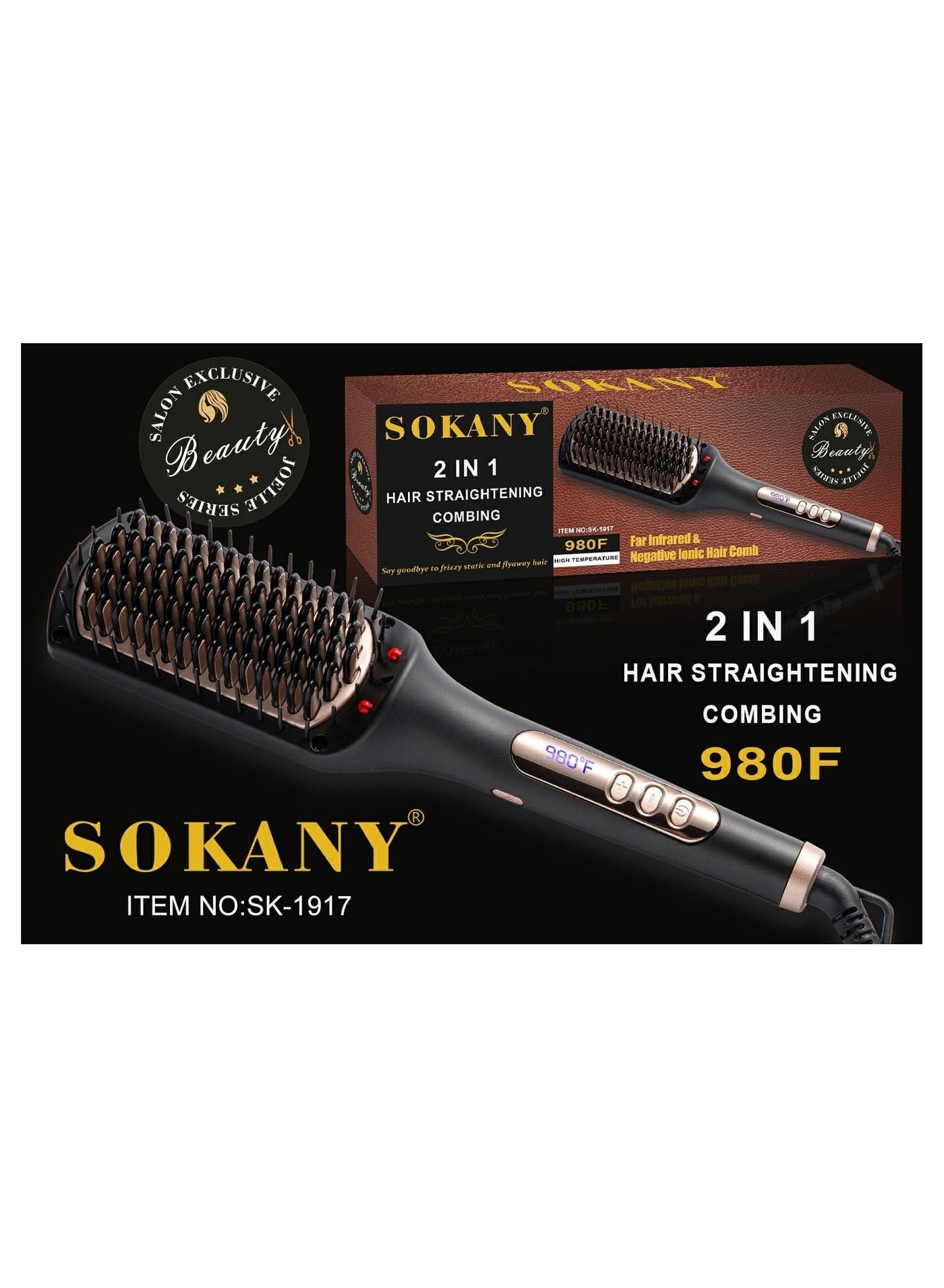 فرشاة شعر سوكانى 980F درجه SK-1917،استخدام آمن قد تكون مجهزة بتقنيات تحمي الشعر من التلف وتقليل مخاطر الإصابة بسبب درجات الحرارة العالية.درجة حرارة عالية:* تصل إلى 980 درجة فهرنهايت، مما يجعلها فعّالة في تصفيف الشعر وتسريع عملية التحميل.أسود