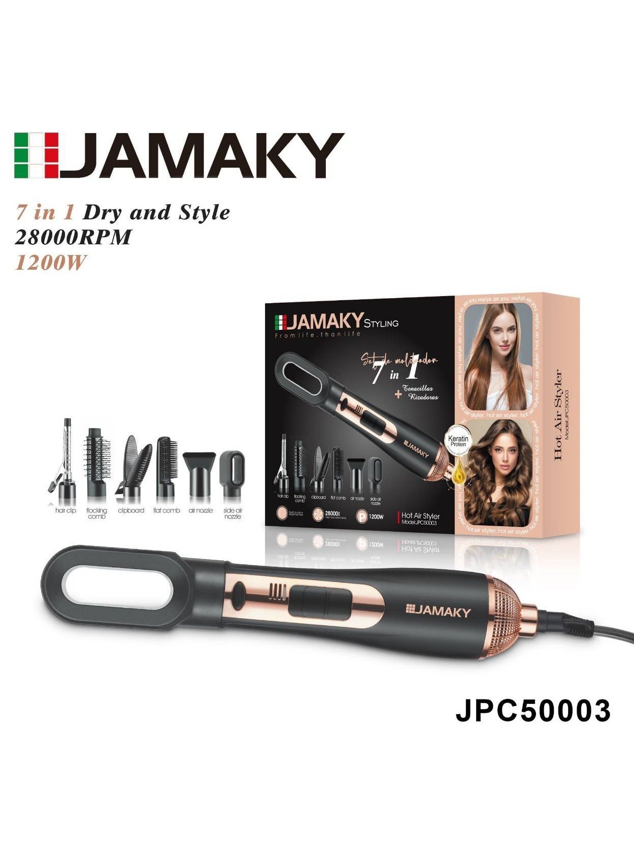 {Jamaki 7 in 1 Hair Styling Spray 1200 Watts Multi-purpose, including all hair attachments, dries and straightens hair easily to create the best high-quality hairstyles - jpc50003 1200.0 Watts Black