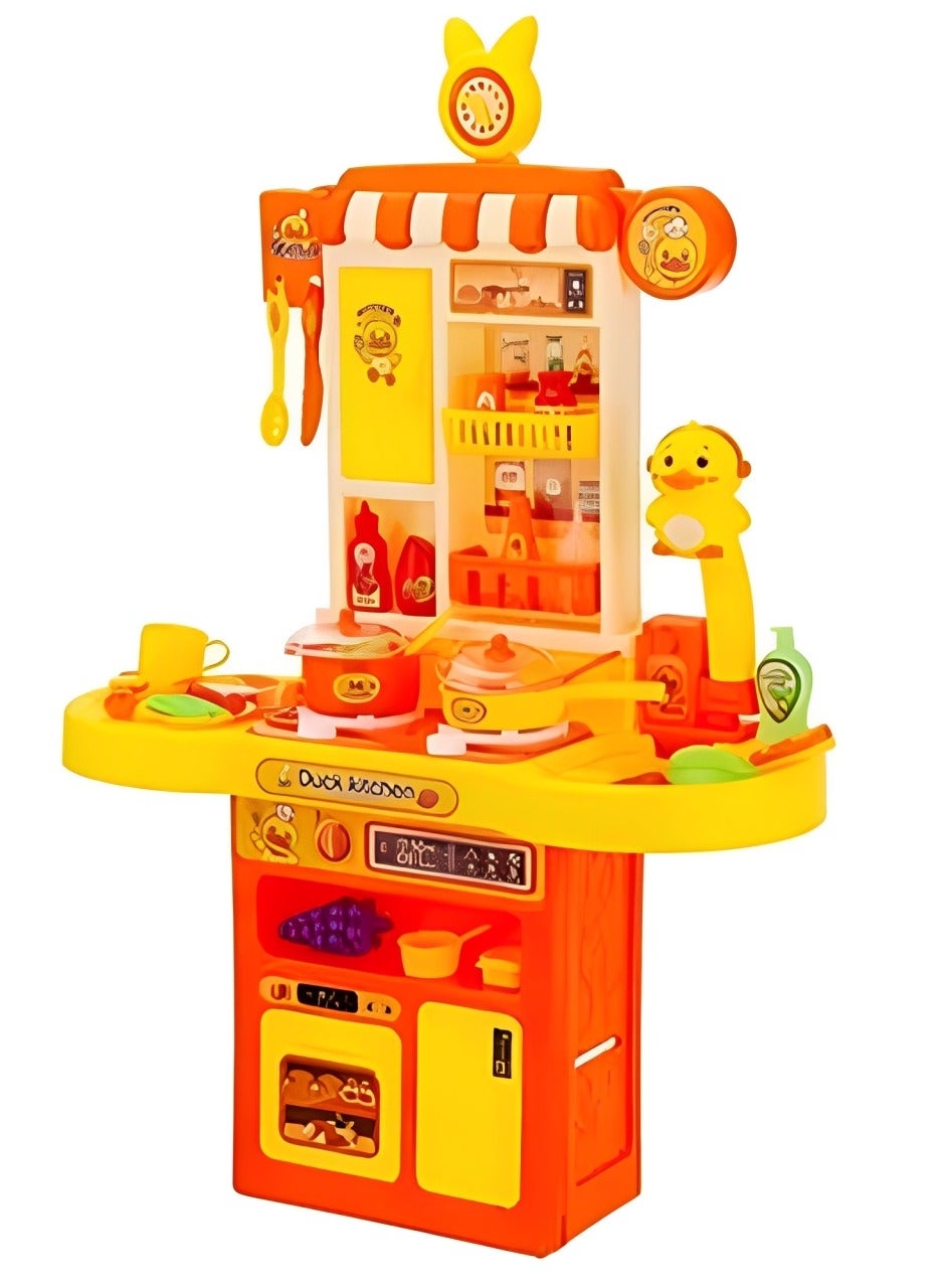 مجموعة مطبخ لعب للأطفال، 44 قطعة بتصميم تفاعلي، أدوات طبخ بلاستيكية وأطعمة، أضواء وأصوات واقعية، حوض مع دورة مياه، ألعاب لعب الأدوار لمرحلة ما قبل المدرسة لتنمية المهارات ألوان زاهية ومجسمات تعليمية ، هدية مثالية للأطفال من عمر 3 سنوات فأكثر