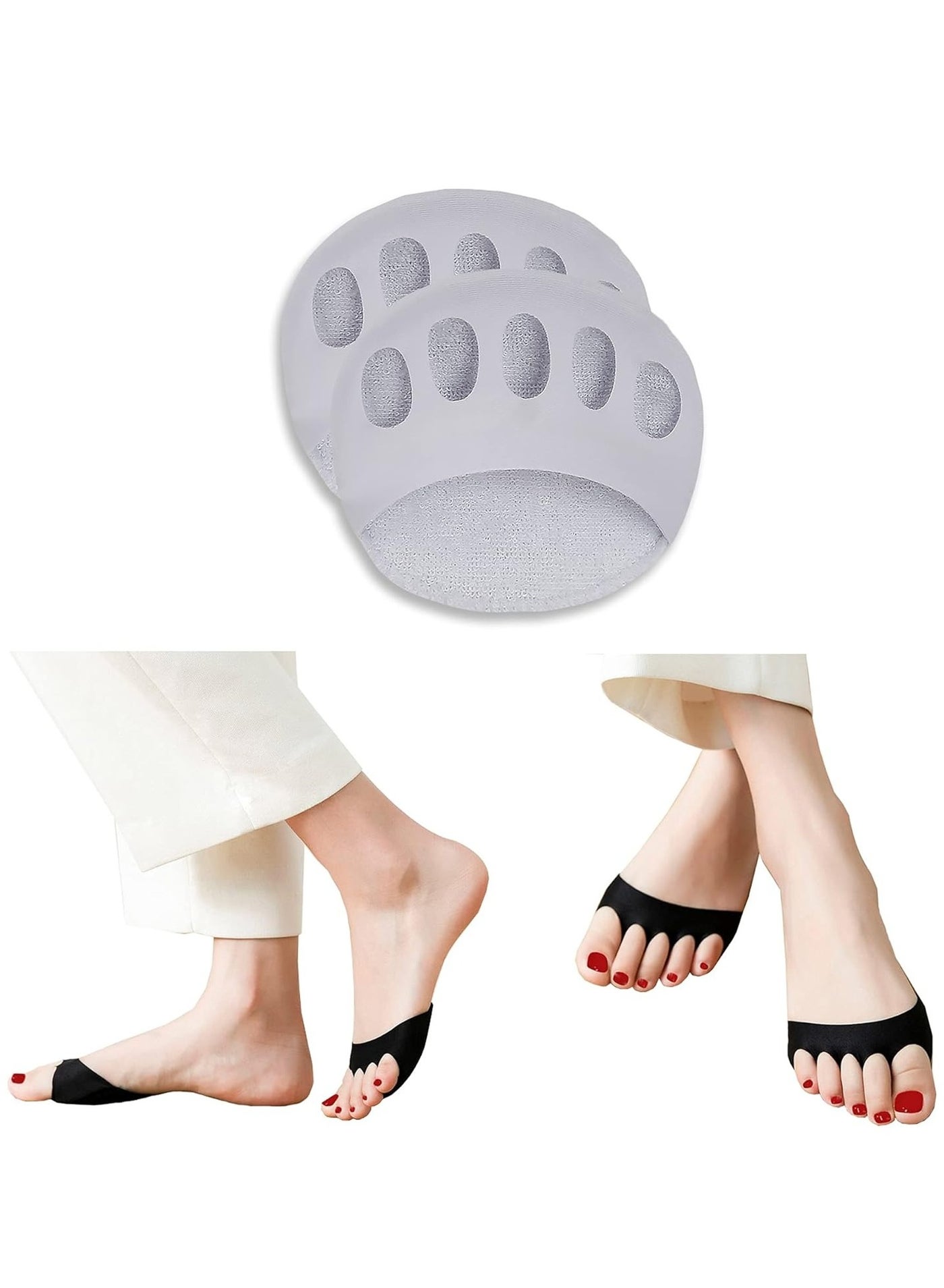 Forefoot Pads for Women High Heels, Non-Slip Toe Socks Forefoot Pad Reusable Ball of Foot Cushions for Foot Pain Outdoor Running (Grey) 1 Pair