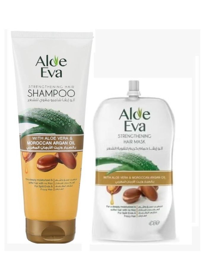 Aloe Eva Strengthening Hair Shampoo With Aloe Vera & Moroccan Argan Oil 230ml + Strengthening Hair Mask With Aloe Vera & Moroccan Argan Oil 250G